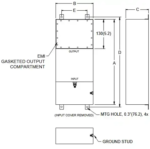 2. FILTER IS BIDIRECTIONAL. IF INSTALLING FILTER INTERNAL TO SCIF RUN POWER INPUT WIRING INTO FILTER EMI GASKETED OUTPUT COMPARTMENT.